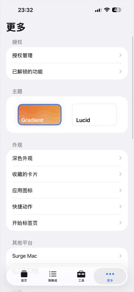 Surge是iOS及macOS平台下一款网络代理软件客户端,同时支持苹果电视操作系统Apple TV OS,支持翻墙协议有HTTP、HTTPS、Hysteria2、Shadowsocks (SS)、Snell、Socks5、Socks5 Over TLS、SSH、Trojan、TUIC、TUIC V5、V2Ray、WireGuard等科学上网协议。
