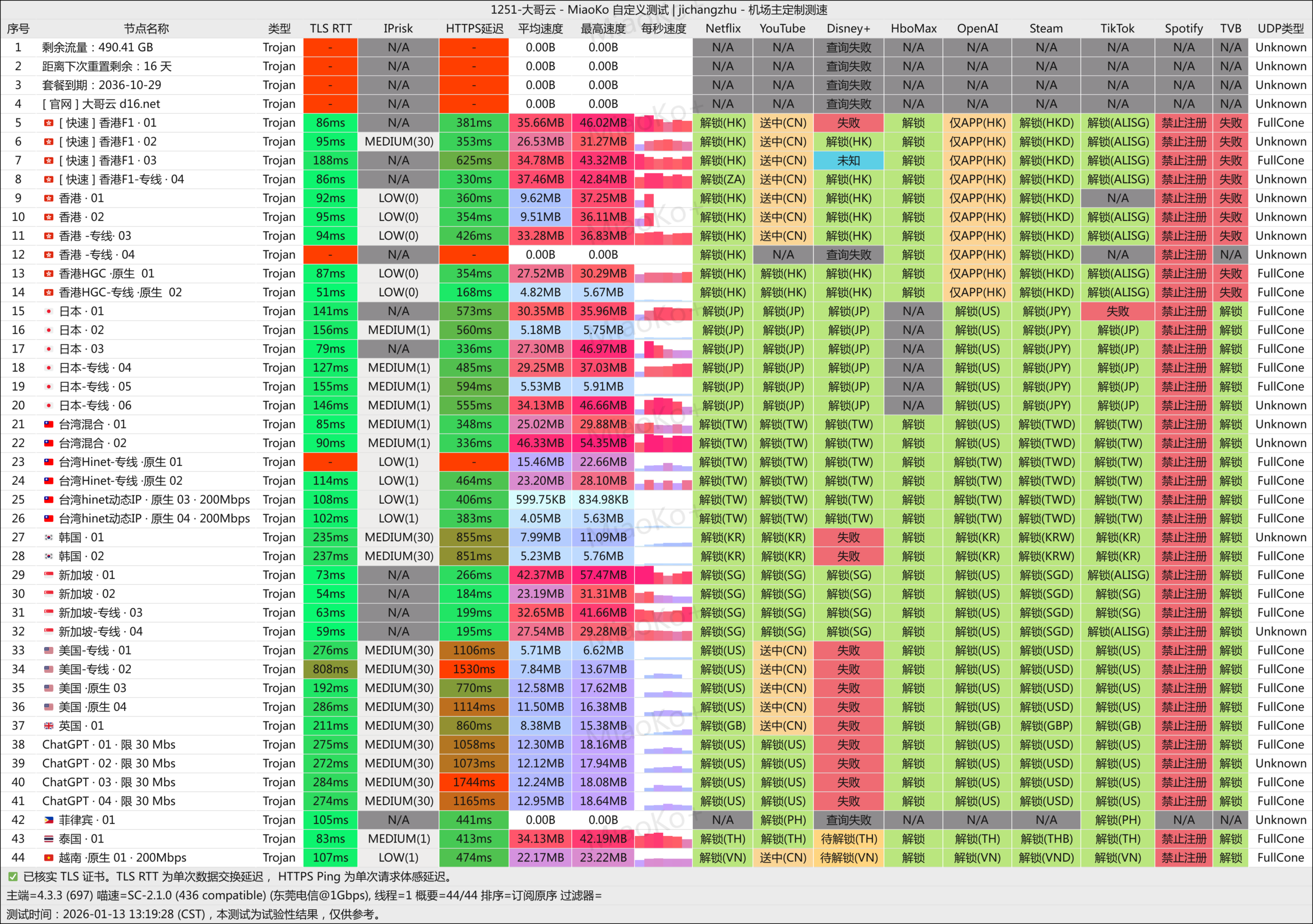 • TLS RTT、HTTPS 延迟:跟测速的宽带本身也有关系,一般测速宽带跟节点所在地物理距离越近,延迟越低。机场的国内入口一般是广东、上海,所以很多时候上海的朋友跑出的测速延迟,就比内陆的朋友更好看。