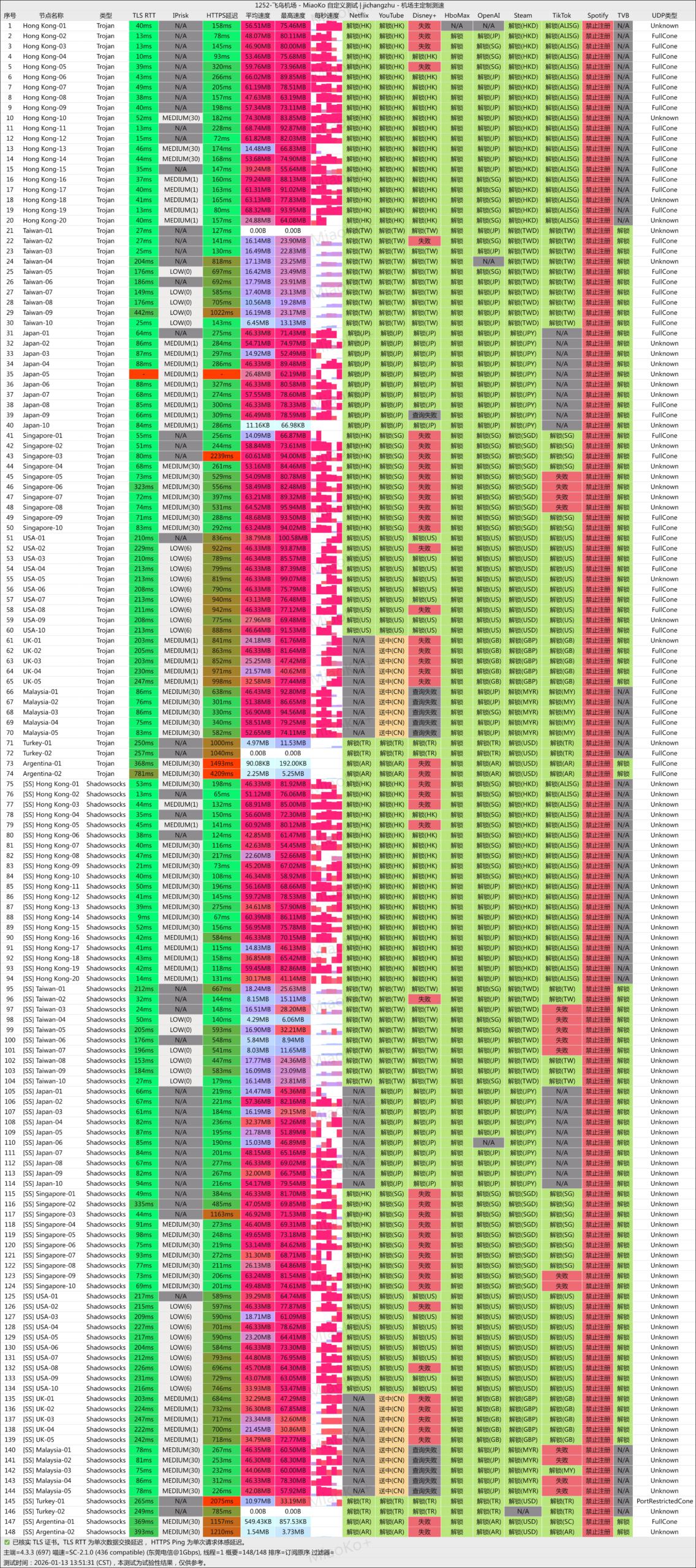 • TLS RTT、HTTPS 延迟:跟测速的宽带本身也有关系,一般测速宽带跟节点所在地物理距离越近,延迟越低。机场的国内入口一般是广东、上海,所以很多时候上海的朋友跑出的测速延迟,就比内陆的朋友更好看。