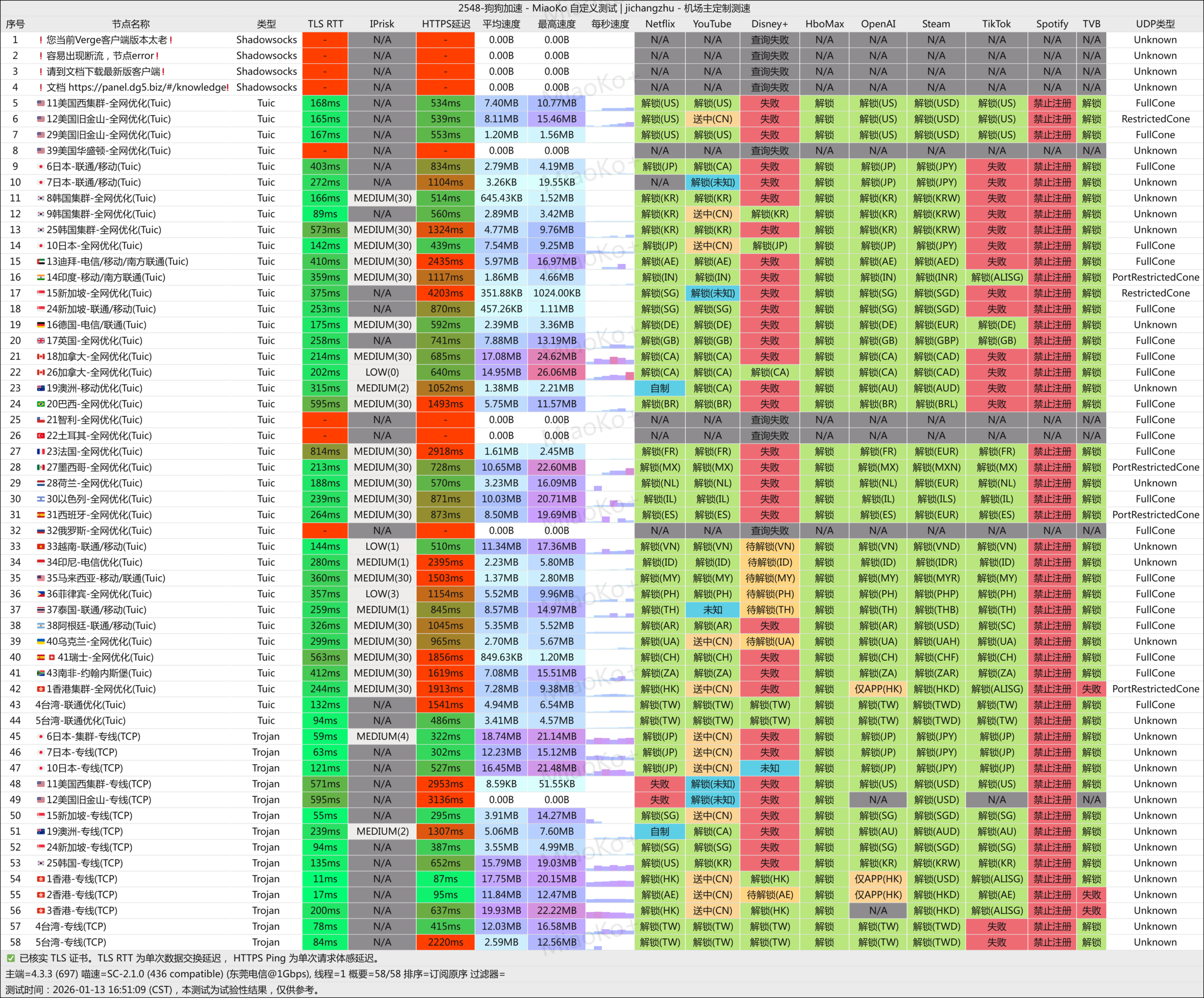 • TLS RTT、HTTPS 延迟:跟测速的宽带本身也有关系,一般测速宽带跟节点所在地物理距离越近,延迟越低。机场的国内入口一般是广东、上海,所以很多时候上海的朋友跑出的测速延迟,就比内陆的朋友更好看。