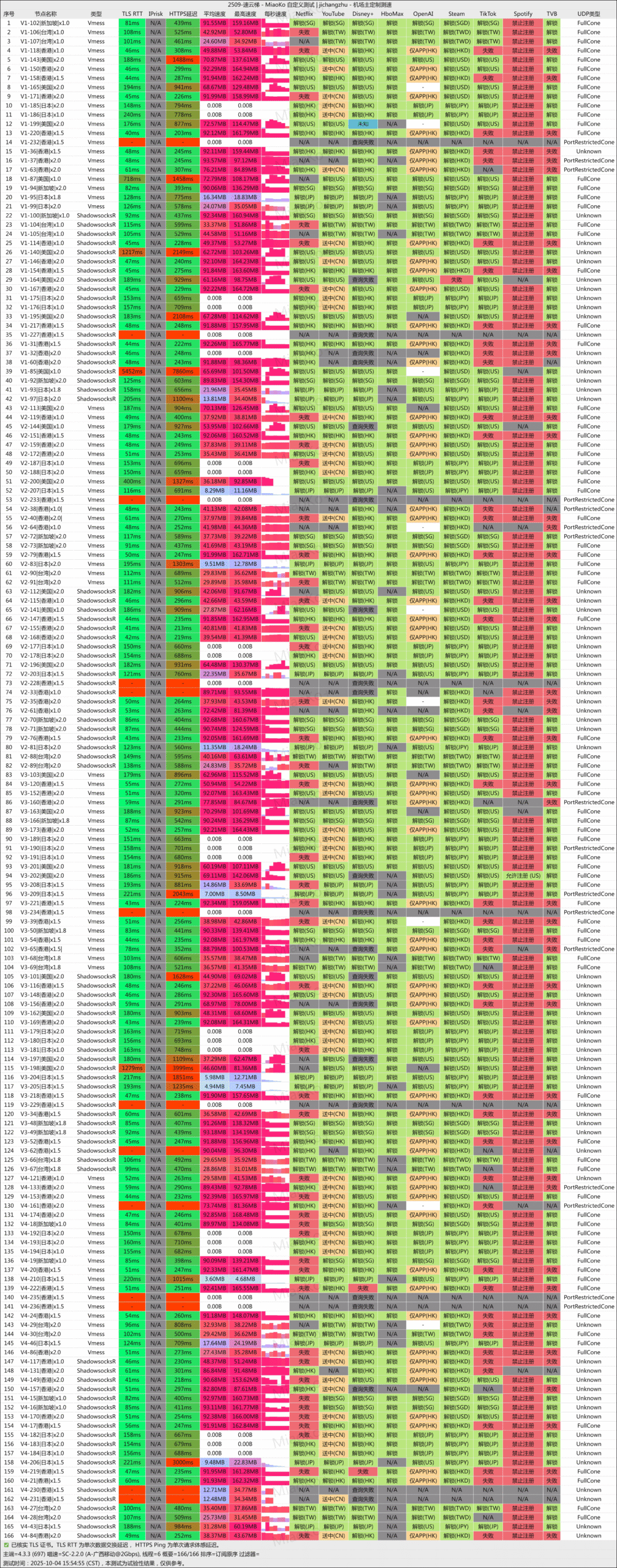 • TLS RTT、HTTPS 延迟:跟测速的宽带本身也有关系,一般测速宽带跟节点所在地物理距离越近,延迟越低。机场的国内入口一般是广东、上海,所以很多时候上海的朋友跑出的测速延迟,就比内陆的朋友更好看。