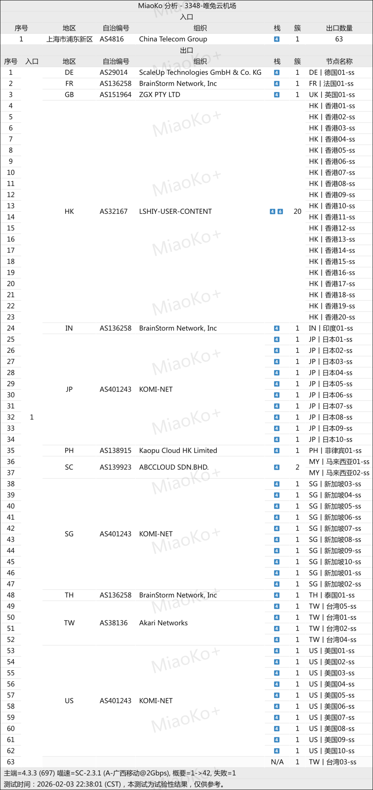 • TLS RTT、HTTPS 延迟:跟测速的宽带本身也有关系,一般测速宽带跟节点所在地物理距离越近,延迟越低。机场的国内入口一般是广东、上海,所以很多时候上海的朋友跑出的测速延迟,就比内陆的朋友更好看。