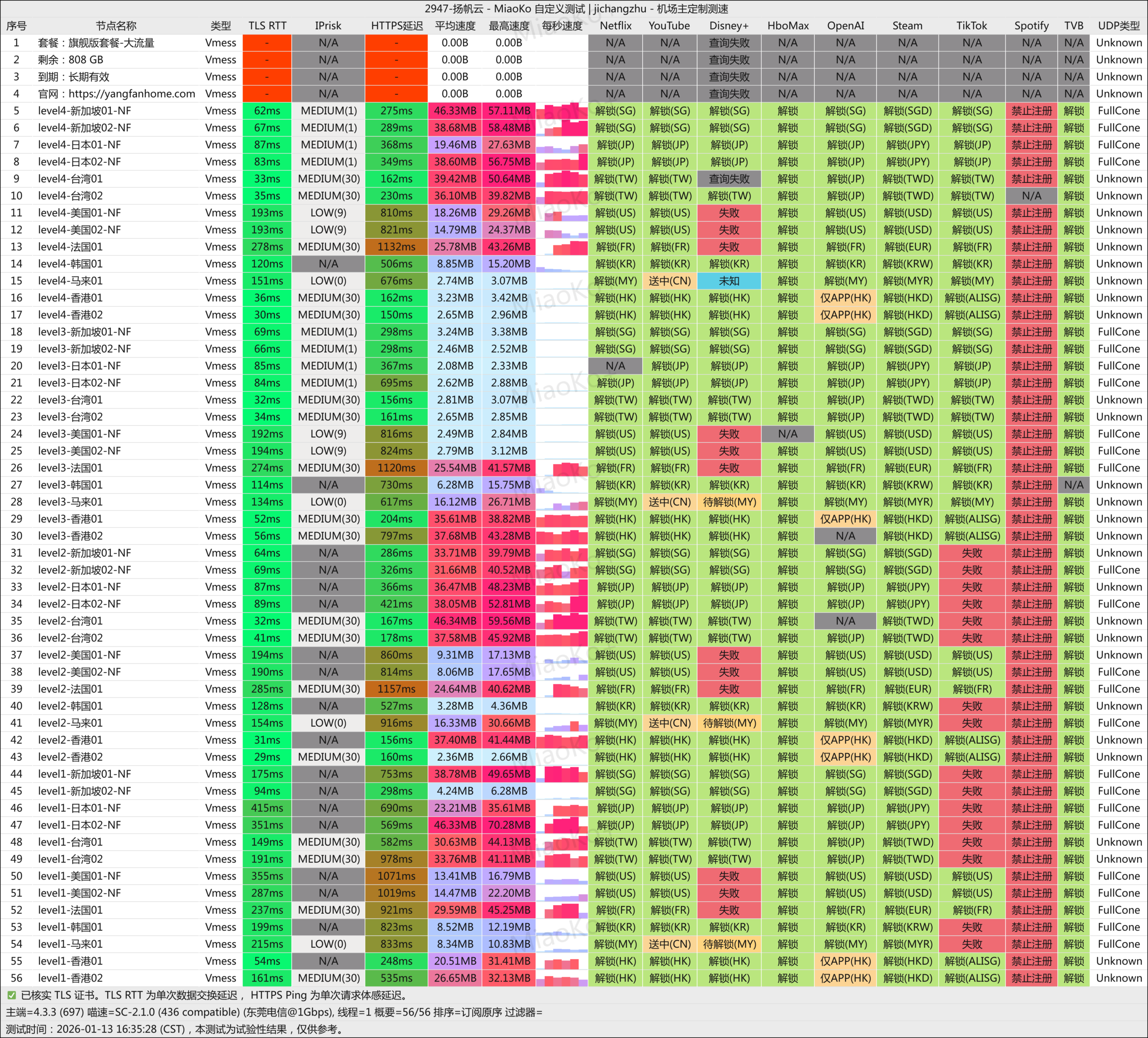 • TLS RTT、HTTPS 延迟:跟测速的宽带本身也有关系,一般测速宽带跟节点所在地物理距离越近,延迟越低。机场的国内入口一般是广东、上海,所以很多时候上海的朋友跑出的测速延迟,就比内陆的朋友更好看。